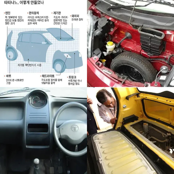 가장 저렴한 자동차라는 나노의 가격은 150,000 루피로 한화로는 약 250만 원 정도라고 합니다. 우리나라에서 1991년 티코가 320만 원이었는데 2008년도에 신차 가격이 250만 원 정도면 물가 계산 했을 경우 역사상 가장 싼 자동차가 맞는 것 같습니다. 이렇게 저렴할 수 있었던 이유는 극한의 원가 절감과 정말 필요한 기능들만 넣었기에 때문이었다고 합니다.